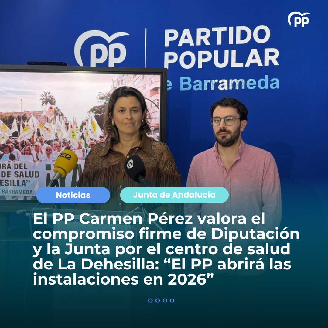 La presidenta del PP de Sanlúcar y portavoz municipal, Carmen Pérez, ha valorado el firme compromiso de la Diputación de Cádiz para finalizar la obra del centro de salud de La Dehesilla y de la Junta de Andalucía en los Presupuestos de 2026 para equiparlo y ponerlo en funcionamiento el próximo año.