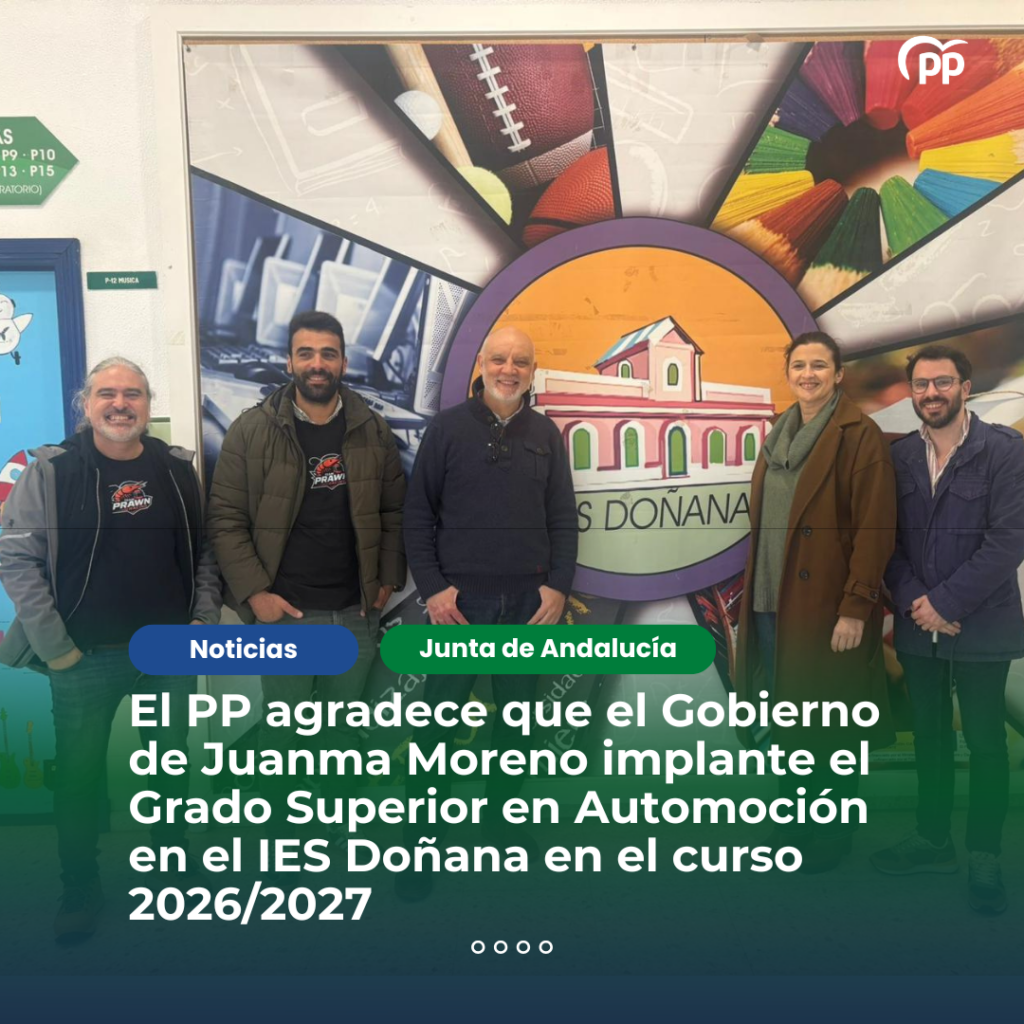 El PP agradece que el Gobierno de Juanma Moreno implante el Grado Superior en Automoción en el IES Doñana en el curso 2026/2027.