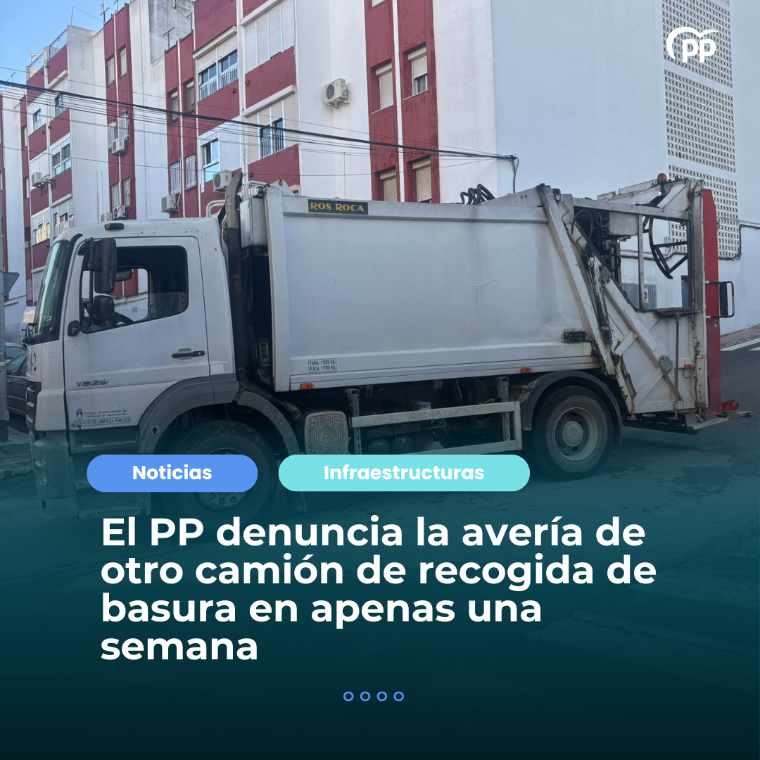 El PP denuncia la avería de otro camión de recogida de basura en apenas una semana.