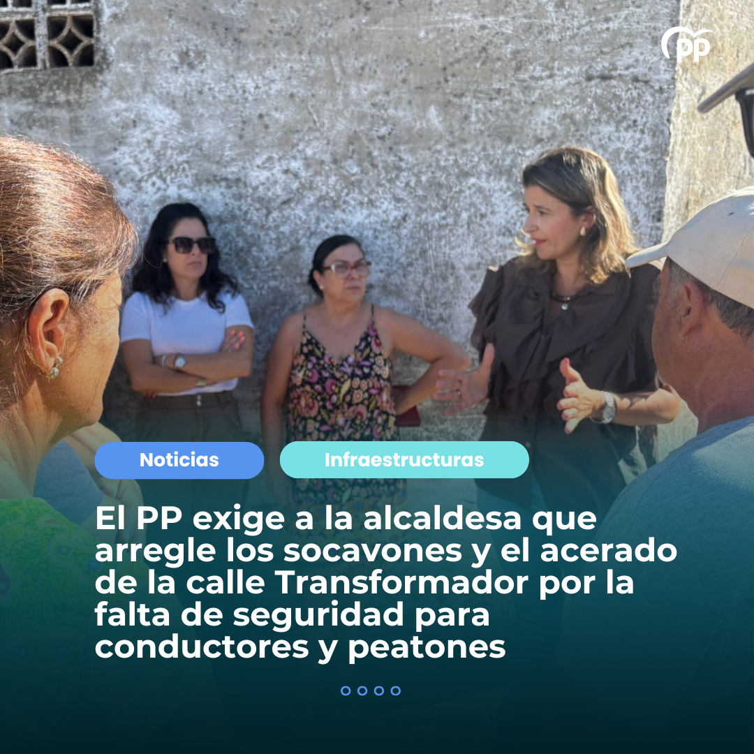 El PP exige a la alcaldesa que arregle los socavones y el acerado de la calle Transformador por la falta de seguridad para conductores y peatones.