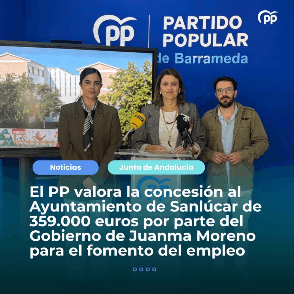El PP valora la concesión al Ayuntamiento de Sanlúcar de 359.000 euros por parte del Gobierno de Juanma Moreno para el fomento del empleo.
