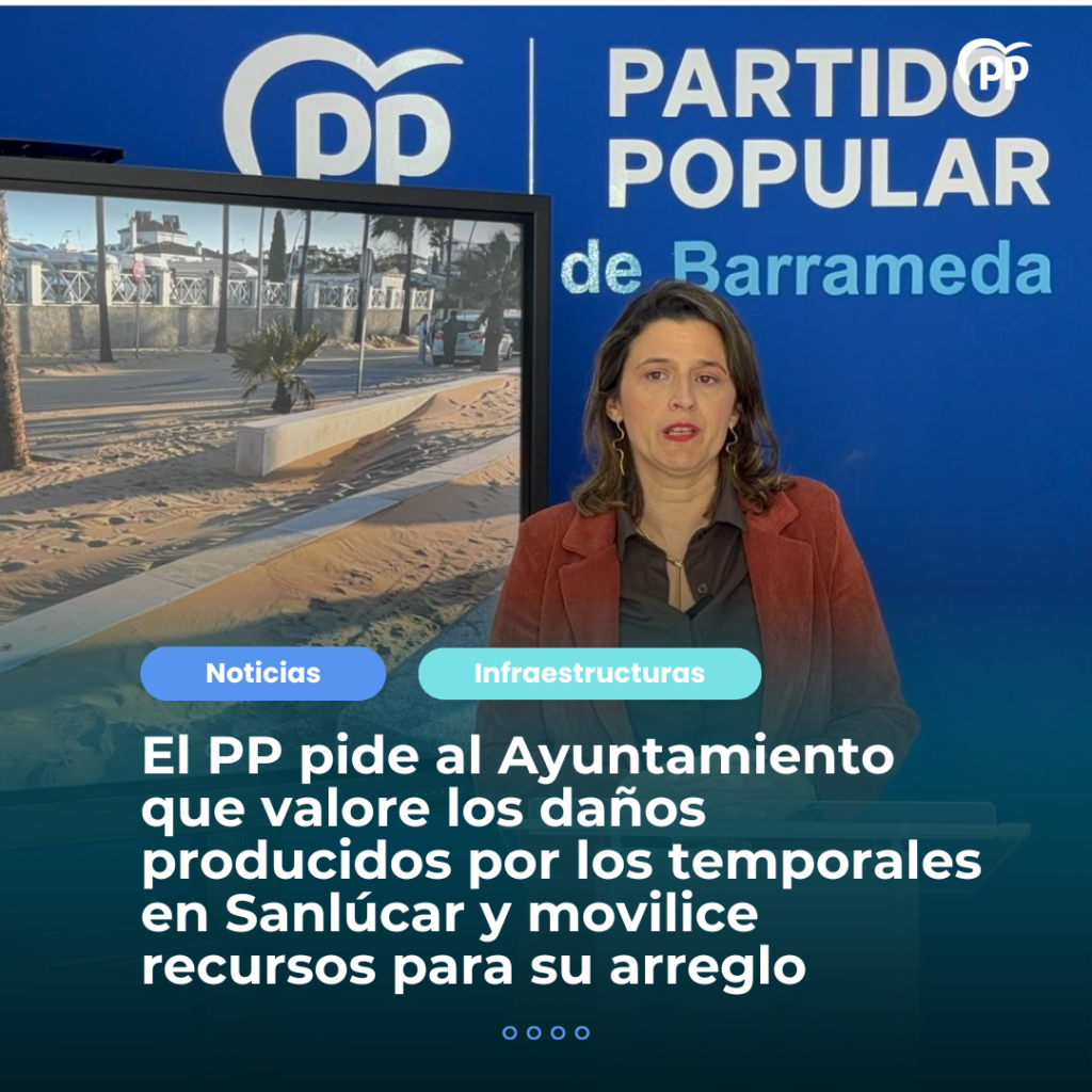 Sanlúcar de Barrameda, 16 de febrero de 2026 El PP pide al Ayuntamiento que valore los daños producidos por los temporales en Sanlúcar y movilice recursos para su arreglo 🔹La presidenta del PP de Sanlúcar y portavoz municipal, Carmen Pérez, lamenta la falta de transparencia e información de la alcaldesa, Carmen Álvarez, sobre las incidencias […]